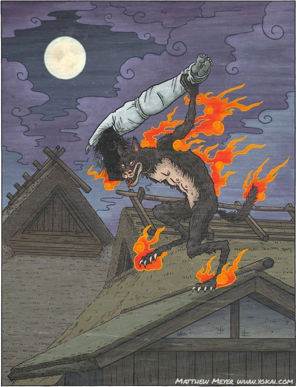 Kasha are a malevolent yokai from Japanese folklore and mythology, belonging to the neko class of animal spirit - like all neko the Kasha are envisioned as a type of demonic feline but are distinguished from other neko by their ghoul-like activitives.Kasha are wicked spirits that frequently steal human corpses both as a source of food and also for use in black magic - possessing the corpses or turning them into "puppets" by which to cause more malice to the mortal world.Kasha are bold for ghouls in that they do not just scavenge the dead but actively steal, the terrible beasts thus commonly stalk funeral services and attack, stealing the corpse and terrorizing those present : once a corpse is captured by a Kasha it is impossible to retrieve, making it difficult for the spirit to pass onto the next life and for this reasons cats were greatly feared in ancient Japan and locals did not allow cats near dead bodies - there were also beliefs that if a cat leapt over a corpse it would return as a zombie due to Kasha magic.In order to prevent Kasha attacks and theft many chants and rituals were formed over the years, including cymbals played by priests or even false ceremonies where priests would trick Kasha by carrying a bag full of rocks, which the demon would snatch and allow the priests sufficient time by which to perform a second and proper ceremony for the deceased.While generally wicked creatures some Kasha are said to be messengers of Hell who are tasked with snatching the corpses of wicked people so as to quite literally drag them to said Hell for punishment.