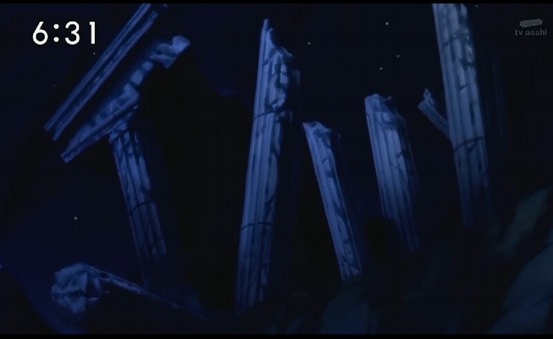 D'ailleurs au début de l'épisode, lors du travelling montrant le Sanctuaire, on peut déjà voir qu'un temple (du zodiaque ?) n'est plus que ruine. Je pense pas que ce soit anodin. Surtout compte tenu des notes musicales de l'instant où c'est balayé.