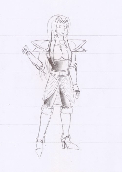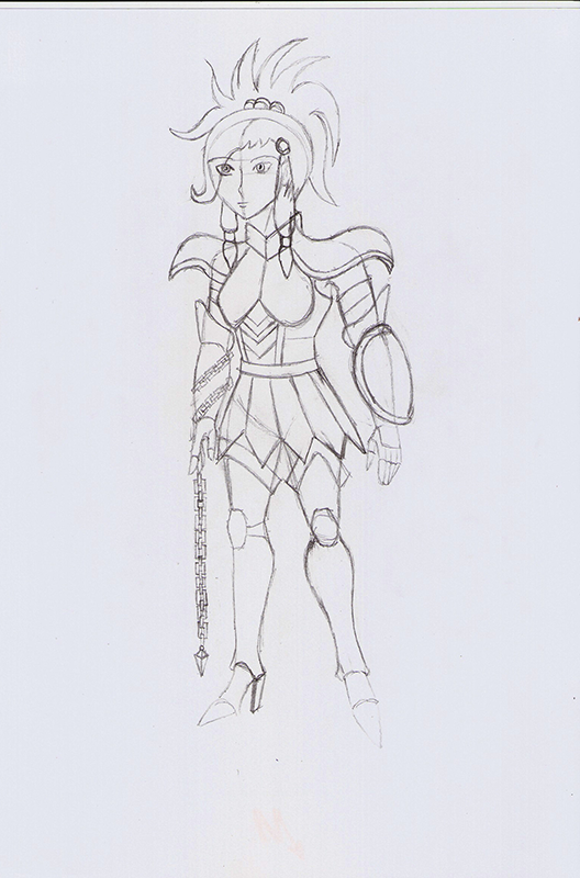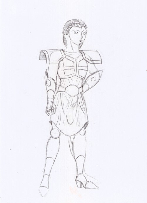 Le bouclier n’est pas visible dans l’angle présenté et elle sera également armée d’une épée
