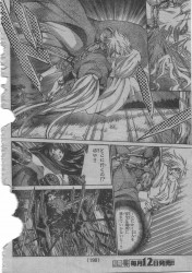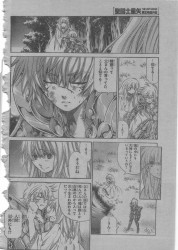 Leo Regulus Chapter 3:That Light - The Shadow Of Fatherp01Regulus: Uwaah!!!Failinis: Really! I've heard that the same technique never works twice against one Saint...Failinis: And yet you still can't grasp magic?Regulus: One more time, Failinis!! One more time!!Regulus: I'll get it, I'm sure! He still can't understand magic!!p02-03Failinis: Let's see! The power of spirits running through the pagan land... What will Regulus do, confronted with this unknown force!?Regulus: And... Again... I don't get it...Regulus: How can light or darkness take a shape and attack me...!?Regulus: After all, I've lost to Balor because I couldn't understand his wave of darkness.Regulus: If I don't see it...Regulus: I won't be able to protect Connor, and she trusts in me so much...!!Failinis: Hey, pay attention!p04Regulus: Uwah!!!Connor: Regulus!! Are you all right!?Regulus: ...Ouch...p05Failinis: Is the magical light too bright for your eyes?...Failinis: It's because you're watching too hard!!Regulus: But... I can't understand something I don't see!Failinis: You still don't get it? Magic is not about being powerful or fast!Failinis: It takes the strength from your soul. It's a phenomenon that won't occur on it's own.Regulus: Takes strength from soul...?p06Failinis: That said, I'm not very well-versed in magic, too.Failinis: Both this light attack you received and my blade, Lightning Slay are filled with spiritual grace of the gods.Failinis: Lady Connor, I'm going to patrol the area.Regulus: Hey... Hey, Failinis!!Regulus: Where are you going?! Just one more time!Failinis: You passed away in your fight with Balor... Rest a little bit!!Regulus: ...But...!!Failinis: The spirits circulate in this world. In the wind, fire, in the living creatures.p07Failinis: To see this flow is to observe the principle of the world.Regulus: The principle of the world...Regulus: Err... Failinis!Regulus: Thanks!Failinis: Take care of lady Connor.p08Regulus: It reminds me...Connor: Huh?...Regulus: This talk of spirits reminds me of something my father would say...Connor: You mean, that they are somewhere in the wind and in the earth?Regulus: Yeah...Connor: Yes... It's true.Connor: My father told me so! Souls of the people who die go through a pig or a swan and reborn again and again!Regulus: Not only as humans!?p09Connor: Exactly! Isn't this wonderful?Connor: And it must be why...Connor: This world is like a tapestry woven from the spirits and the souls of many people!Connor: Your father must have become a light spirit!Connor: And he must be somewhere near my father!Connor: Oh, but your father might be also some lovely piglet.Regulus: Connor...p10Regulus: Take it easy, ok?Connor: Eh...Connor: Bu-but, it's not like this! I'm fine!Regulus: But... You just lost your father...Connor: I'm all right! The same thing happened to you and you are fine, aren't you?Regulus: Yeah... but for me it's an old tale...!Connor: So, would you better want me to cry?p11Regulus: I want you to laugh.Connor: Ha, you see!!Regulus: Huh?... Really?...Connor: I hope Failinis is back soon!Kyaa!Connor: ...The wind... It sounds like a cry.Regulus: Yes...Regulus: It's probably because I can't see... But, this sound...Regulus: ...Makes me a bit uneasy.Regulus: Like the sound of the forest, when I was a little kid.p13Connor: A woman, out of nowhere...!?Regulus: Woman...?Regulus: How?...Regulus: I didn't feel anything...Connor: She's crying... What happened...?Regulus: Wait, Connor!!! Don't get close!!!p14-15Connor: Failinis!!!Regulus: Connor!!!Connor: Why...!? Why Failinis, too...?p16Connor: Nooo!!!Banshee: I'm sad... Death of a warrior truly makes me sad.Banshee: I grieve over it. I'm so sad for what you feel, too...Banshee: No matter how shiny a warrior's armour is, it won't stop death.p17Banshee: Your white dress...Banshee: And golden armour of the boy beside you, they are all pitch black.Banshee: That's because you're going to die.Banshee: I'm going to grieve you a lot.Banshee: I, Shelley of Banshee...!!p18Regulus: This feels...just like Balor!!!Regulus: Get back, Connor!!!Regulus: Lightning Plazma!!!!p19Regulus: What!? It went right through...Banshee: You're a cruel child... How can you attack like this, all of a sudden?...Banshee: You're tearing me apart...Banshee: Oh, overflowing...Banshee: The tears, the sorrow...Banshee: Darkness...Regulus: Look out...!!!p20Banshee: Lamentation Rain!!!p21Regulus: Ngha...!!!Connor: Regulus!!!Regulus: Even with the Gold Cloth, what an impact...!!Regulus: Is this... darkness!? And it's shooting like bullets?...Regulus: (sadly, the page is ripped here and I can't make it out Sad )Connor: Failinis!!Regulus: Kuh... There's no other way...?!p22Regulus: At any rate, I must take these two to a safe place...!!Banshee: Where are you going, boy!?p23Banshee: Stupid boy...Banshee: You won't escape.Banshee: It's so sad I have to kill such a vigorous child...Banshee: I'm going to cry many tears.Banshee: Huhuh...Banshee: But...Banshee: I like this feeling so much...p24Regulus: Connor...! Failinis is still breathing a little...Regulus: But... all I can do is to stop the bleeding.Regulus: For your own safety, stay with her!Connor: Regulus...Regulus: I'm going!Connor: No...p25Connor: Noo!! Regulus!!!Regulus: Connor...Connor: It's a stupid idea!... You still can't see with your eyes... Don't go! Don't leave me alone...Connor: The truth is... I don't think at all that your father is somewhere close...Connor: I can't loose you too, like I've lost my father and Failinis...!!Connor: I'm weak, I'm sorry... I want to be with you...Regulus: Eheh!p26Regulus: Thanks, Connor! I can always count on you!Regulus: Being left all alone is bad!Regulus: I would always cry when my father went for a hunt.Connor: Regulus, you...?Connor: No way...Regulus: But since my father died, I've never cried because of fear.Regulus: I've understood that now there is noone to defend me.Regulus: So, you know, Connor, it's good that you're crying.Regulus: Because I'm protecting you