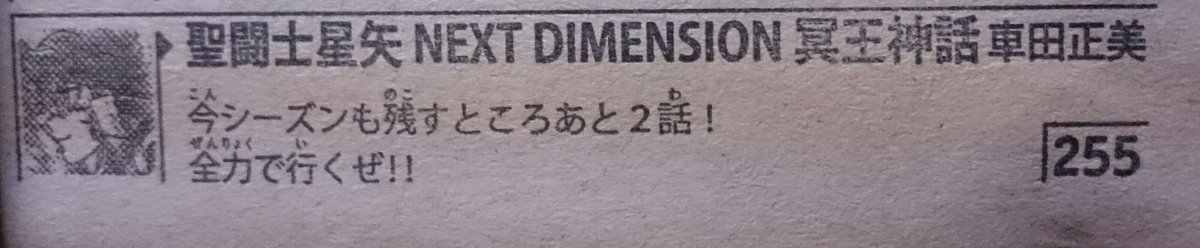 Muuh huge correction avec une des dernières images du twitter d'où viennent les derniers trucs. Il y a encore deux chapitres de StS ND, pas 2 jours pour Seiya. :)) Mort aux abbréviations des spoils. :o