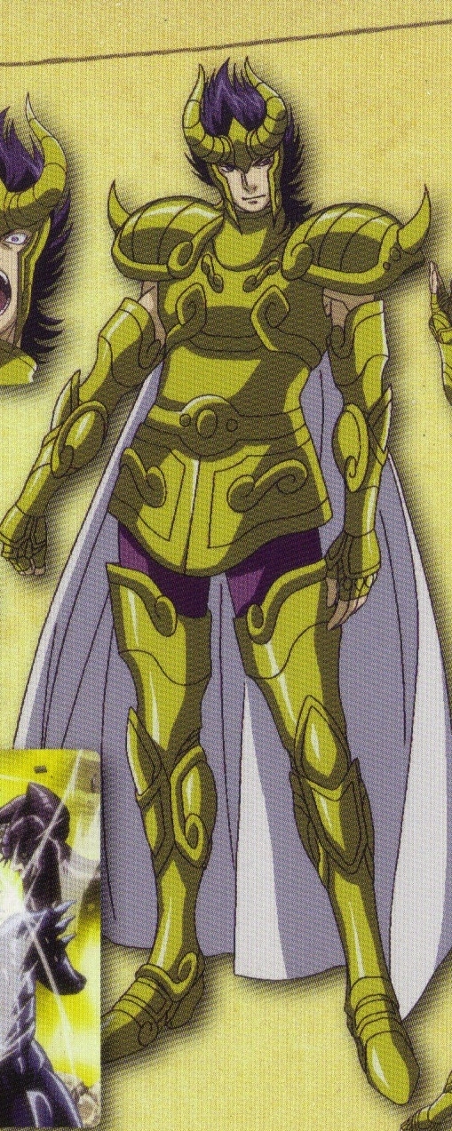 Pour être absolument exactement, les avant-bras des deux sont tout de même les mêmes. Le Shura/El Cid du manga a des renflements caractéristiques au niveau des poignets illustrant les sabots du Capricorne [:aloy]