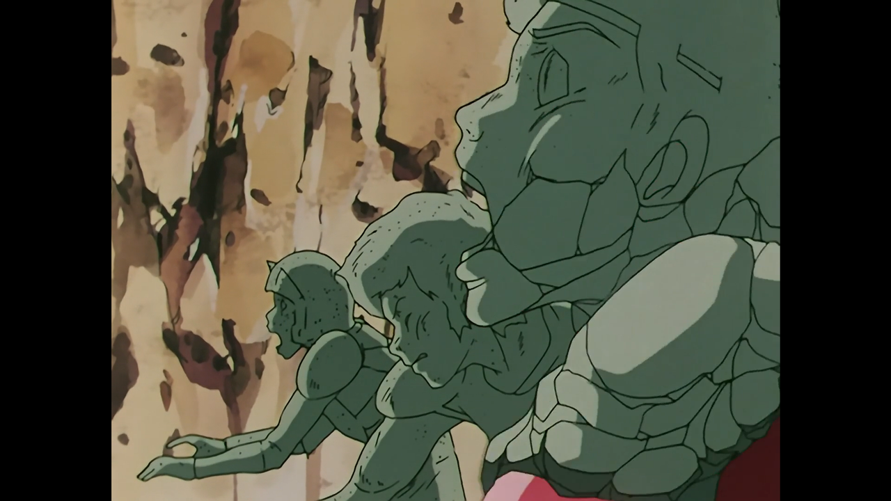 Dans la scène où les trois apprentis sont pétrifiés, la joie de partir disparaît instantanément, dès qu'ils voient la lumière. Les visages sont tordus d'horreur, la lumière rouge et le son des voix déformé vont dans ce sens. Voici un enregistrement à la va-vite. https://streamable.com/1qt2u0 Leurs visages, une fois changés en pierre, évoquent bien la peur et le désespoir. Juste après, Shaina se rapproche d'Algol avec un rire maléfique en se posant sur une des statues. Apprenant que des Saints de Bronze ont vaincu des Saints d'Argent, censés être plus forts, Algol s'énerve et écrase la tête d'une des statues, et broie le reste de pierre dans sa main, tuant définitivement l'un d'eux. Il dit d'ailleurs "Je les tuerai, je les changerai en pierre". Dans le rythme, la mise en scène et le jeu des acteurs, pétrifier et tuer, c'est pareil. Puis d'ailleurs, lorsque les trois gosses le supplient, il commence par émettre un ricanement avant de répondre, comme si ça l'amusait de les voir s'agenouiller devant lui. Même si Aiolia dit qu'au Sanctuaire, on devient Saint ou mort, il affiche un air plus compatissant devant ces apprentis récalcitrants et leur demande de les suivre en leur promettant de passer l'éponge. Ce que Algol raille en disant qu'il est trop clément. D'ailleurs, quelques plans plus isolés : Spoiler (click to show/hide) 10